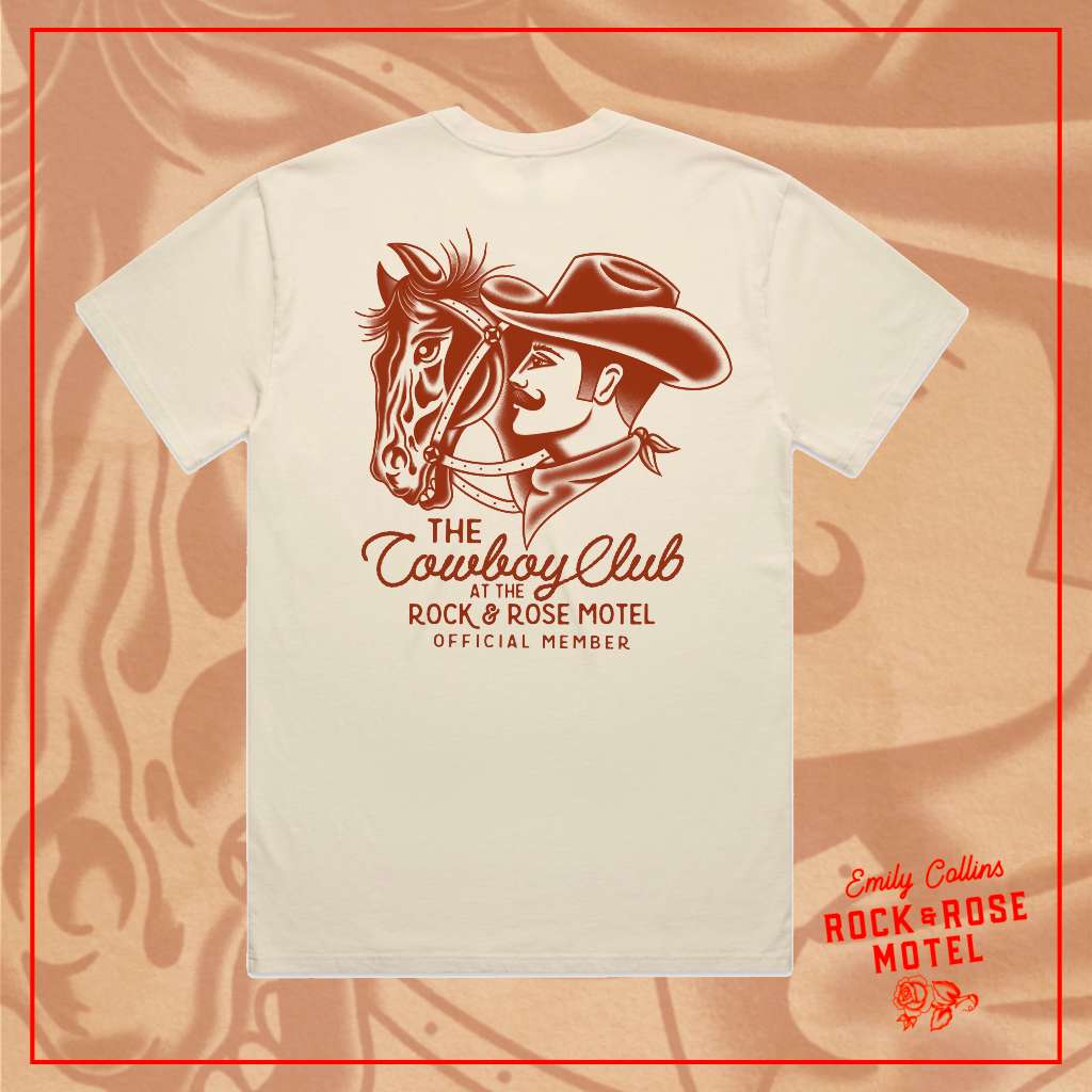 The back design steals the show, with rich brown “Cowboy Club” text and an iconic cowboy and horse graphic that channels the spirit of the open range. Whether you’re hitting the trail or the town, this tee makes a bold statement while keeping things comfortably laid-back. Built to last, it’s a go-to piece for anyone who loves a touch of Western charm.