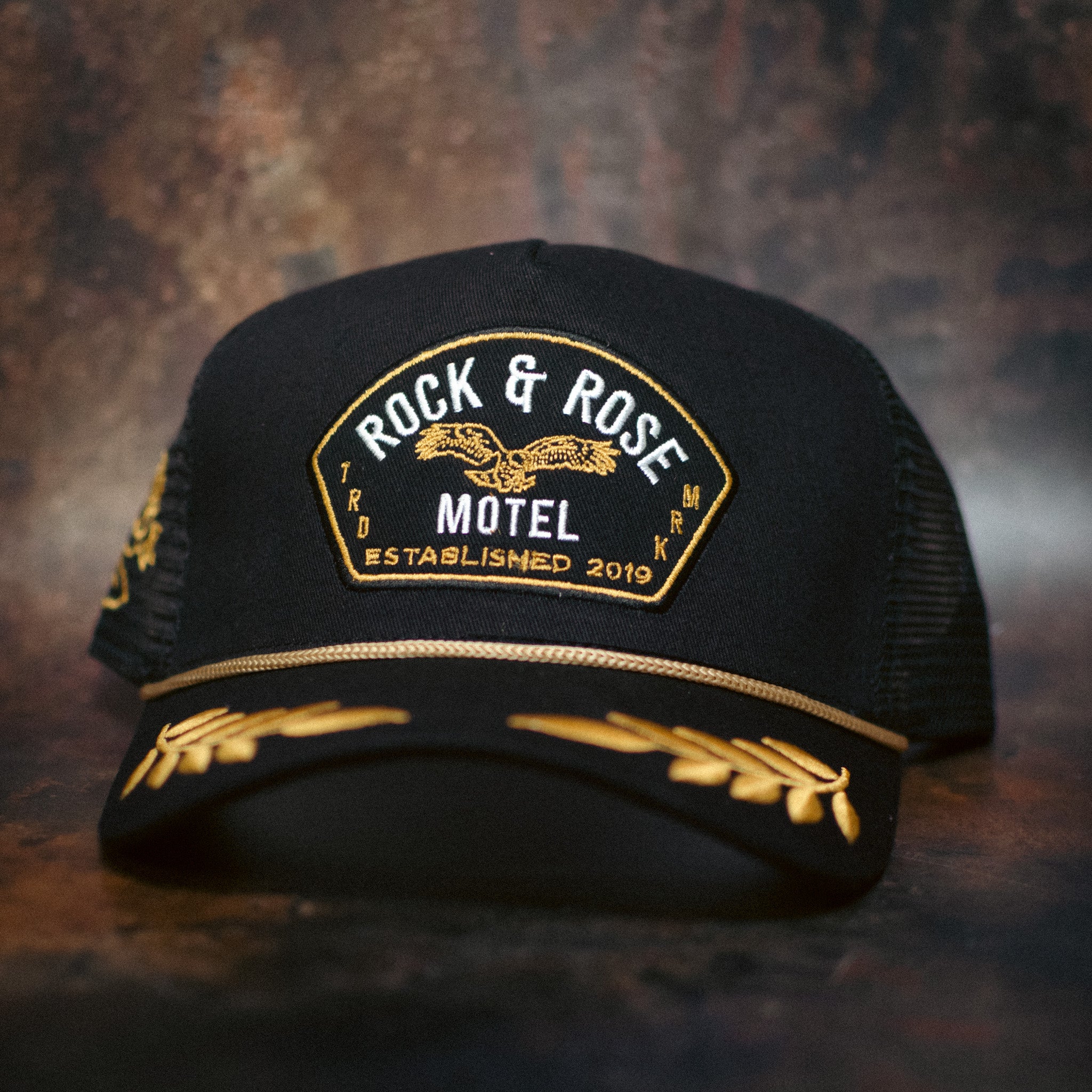 Rock & Rose Motel Black & Gold Captain’s Trucker Cap